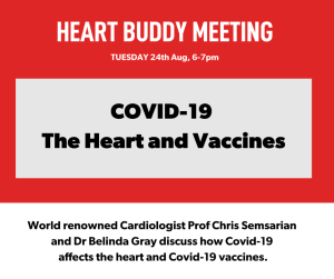 Heart Buddy Group. We hope you can join us tomorrow (Tues 24th) for our Heart Buddy Meeting on COVID-19 – The Heart and Vaccines. World