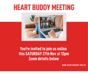 If you would like to be paired with a Heart Buddy, please email Hearts4heart at info@hearts4heart.org.au or call 1300 343 278.